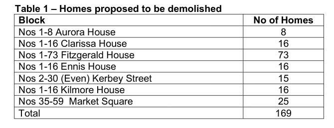 Seven blocks on the estate were earmarked for demolition including the 21-storey Fitzgerald House.