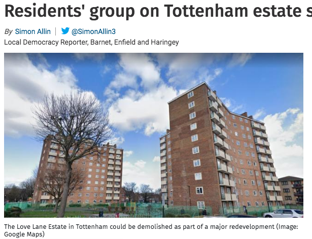 297 council homes on the Love Lane estate have been earmarked for redevelopment as part of Haringey's regeneration of Tottenham.