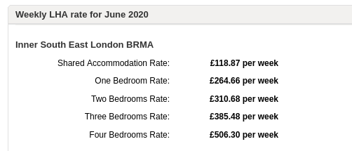 Lambeth's Tenancy Strategy says that family homes (3 beds+) must be let at target rents but 1 and 2-bed homes can be let at affordable rent up to local LHA rate levels. LHA rates for Lambeth are currently as follows: