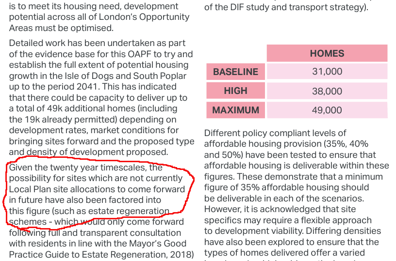 The Mayor has designated the Isle of Dogs as an 'opportunity area' and his planning framework for the area envisages 49,000 new homes some of which provided through the regeneration of existing housing estates: