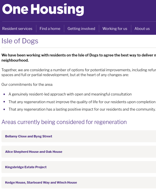 One Housing Group's website - https://www.onehousing.co.uk/about-us/what-we-do/development-and-regeneration/isle-of-dogs