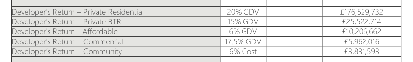The viability assessment submitted to justify the claim that the scheme can't meet the Mayor's requirement of 50% affordable housing, confirms that the developer is estimated to receive over £200m profit: