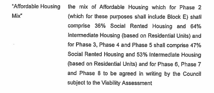 Phase 3 will deliver 584 additional housing units, of which 341 will be market rate (58%) and 243 will be “affordable” (42%, with 117 social (housing association) rent units and 126 shared ownership and shared equity units).